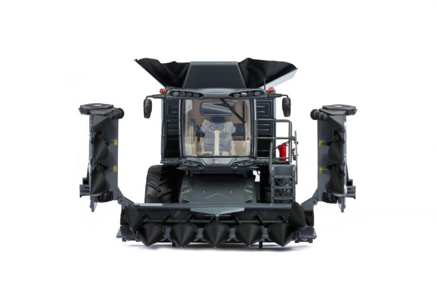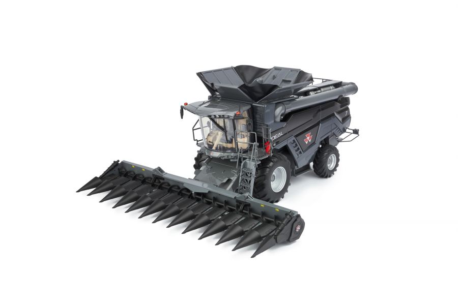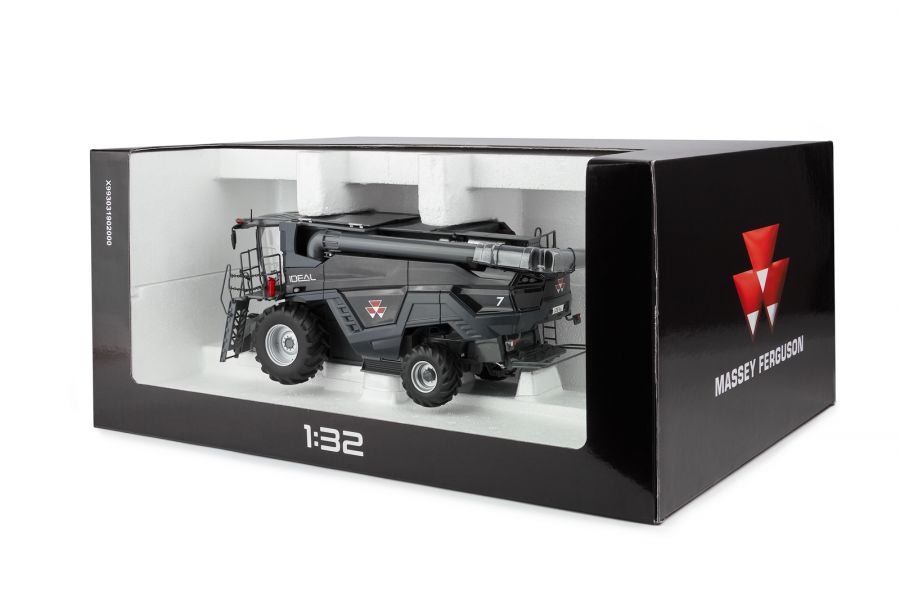 Questo modello in scala 1:32 dell’Ideal 7 con testata mais mostra molti dettagli: realistica tramoggia per cereali apribile, scala posteriore mobile, gancio di traino posteriore per il fissaggio del telaio a rulli, scala anteriore mobile della cabina, scarico cereali migliorato, pneumatici anteriori e ruote posteriori sterzanti e una testata per mais.